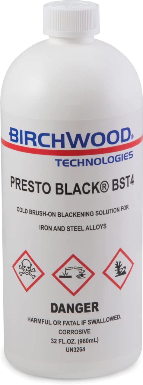 Birchwood Presto Black BST4 Technologies - Cold Brush On Blackener Solution For Iron And Steel Alloys Traditional Patina Steel Blue And Black Oxide