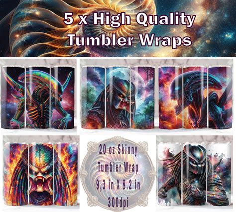 Predator Vs Alien Tumbler Wrap X 5, 20 Oz Tumbler Wrap, Predator Sublimation, Predator PNG, Predator Tumbler Wrap, Xenomorph Tumbler Wrap.